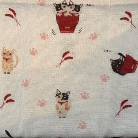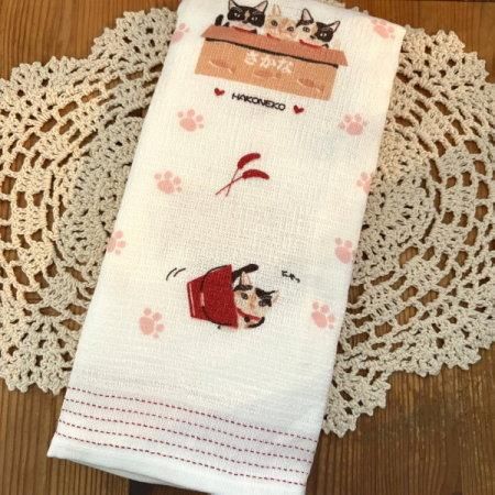 お気に入りの箱に入ったにゃんこや、足あと&ねこじゃらし柄が可愛いタオルです
